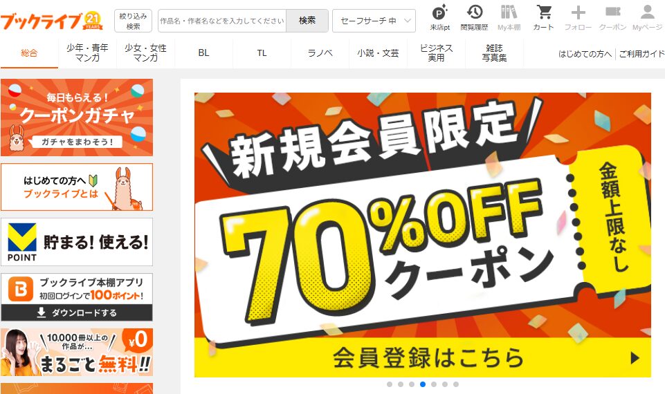 BookLive! | Tポイントが 貯まる・使える | 50%OFFクーポン | Tポイントユーザー |
