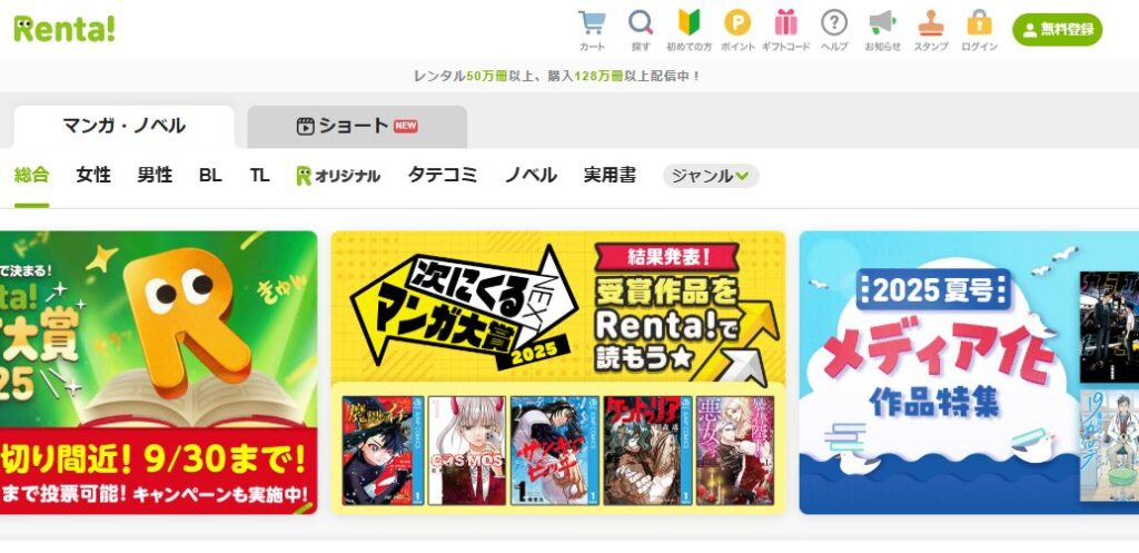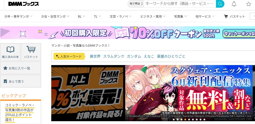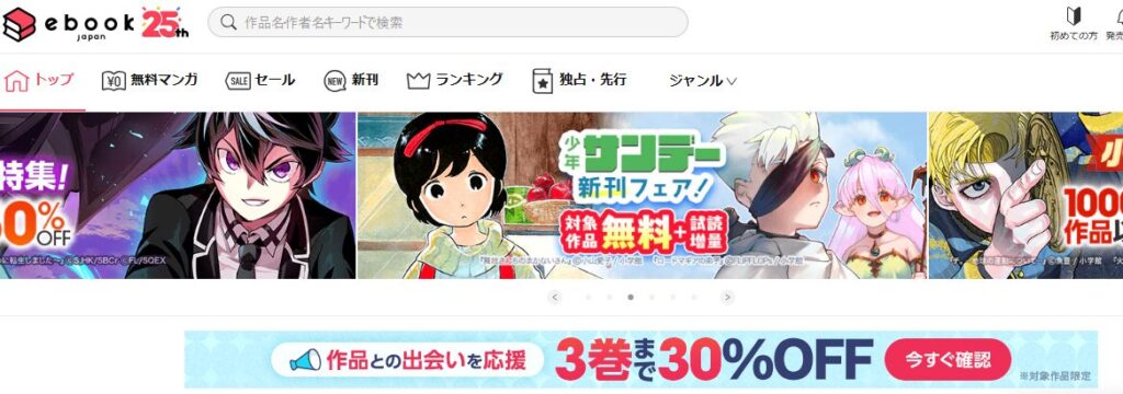 こちらも初回特典が強力で、初めての購入ならなんと100冊まで40%OFF。