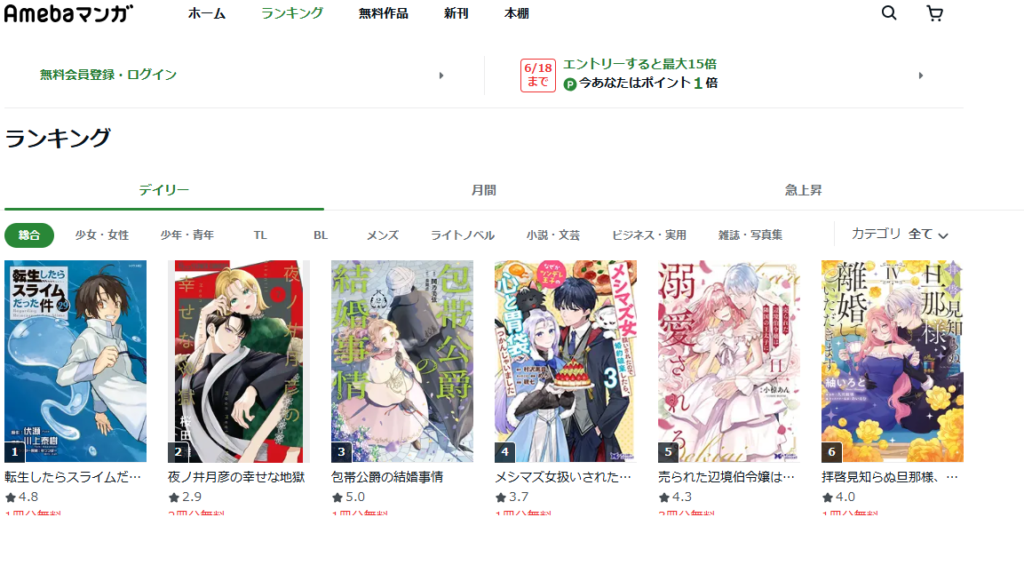 毎月開催されるコイン還元キャンペーンが超強力で、まとめ買いすればするほどお得に読めます。