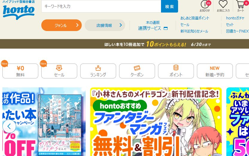 【お得情報】毎日ひける「hontoポイントくじ」や、紙+電子のW購入でポイントアップキャンペーンあり。