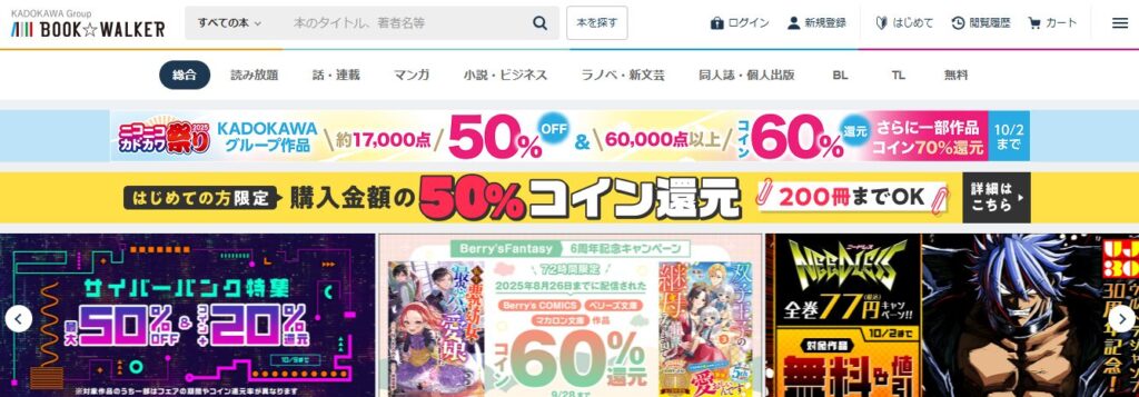 BOOK☆WALKER | ラノベ・アニメ系 作品に強い、 コイン還元豊富 | 初回購入50%還元 | ラノベ・オタク系 作品を、安く 大量に読みたい人 |
