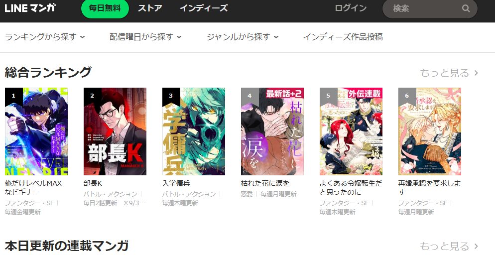 LINEアプリから気軽にアクセスでき、毎日無料で読める作品が非常に豊富。