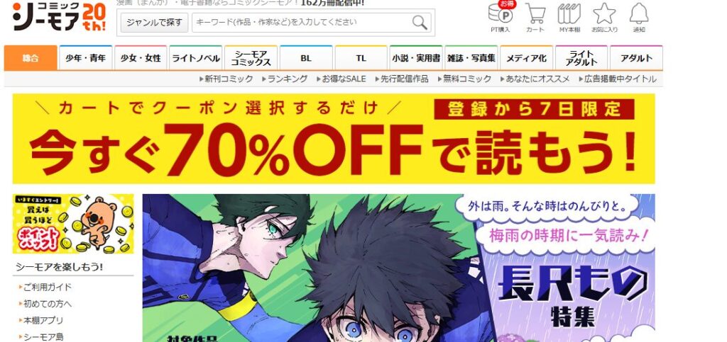 コミックシーモア | ★【7月】 長編作品の無料& 試読増量多数! | 初回50%OFF | 期間限定セール多数、 月額メニューあり。 ポイ活もできる。 友達紹介コードあり 「BDe8e7j」 |