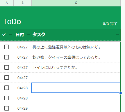 私は「勉強に取り組む前」というタイミングで使用すると決めてこんな感じのチェックリストを作ってみた。